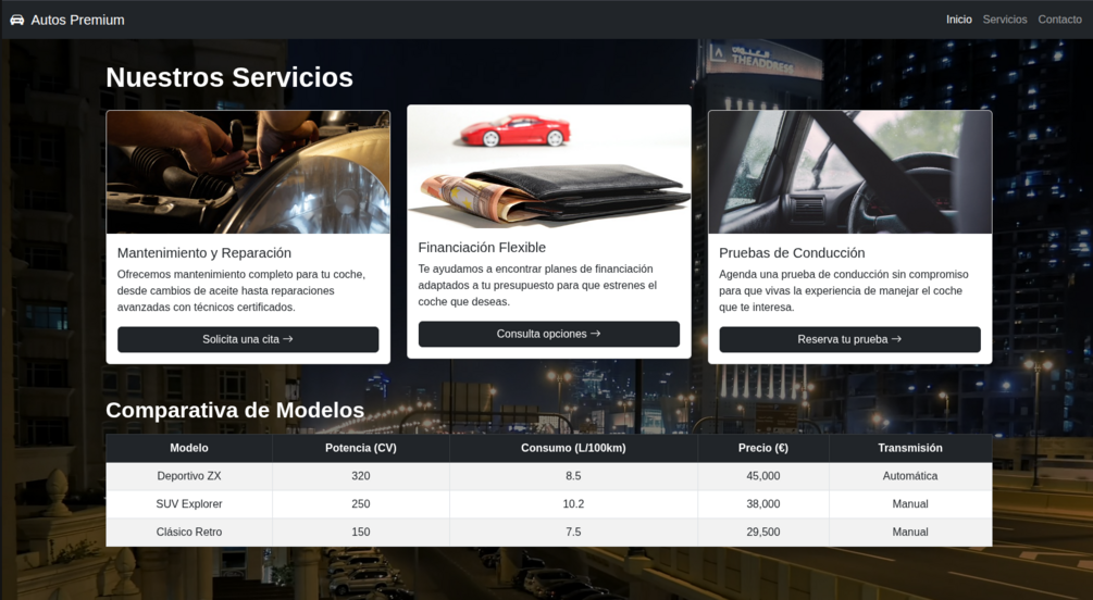 ÂżBuscas un sitio web profesional y totalmente responsive para mostrar modelos de coches, servicios y datos de contacto?