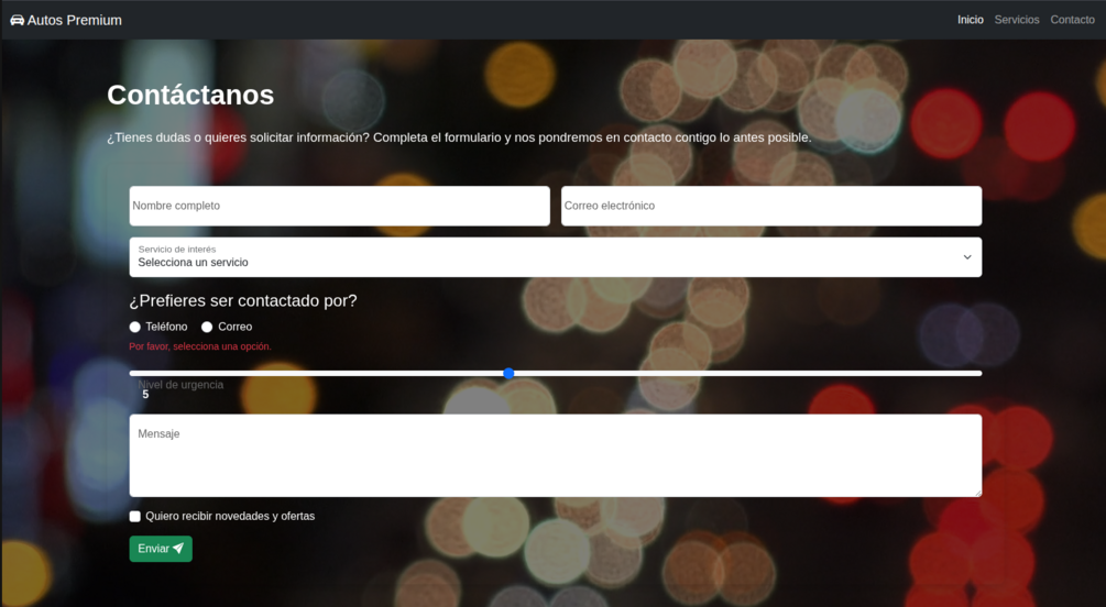 - Páginas incluidas: Inicio, Servicios, Contacto